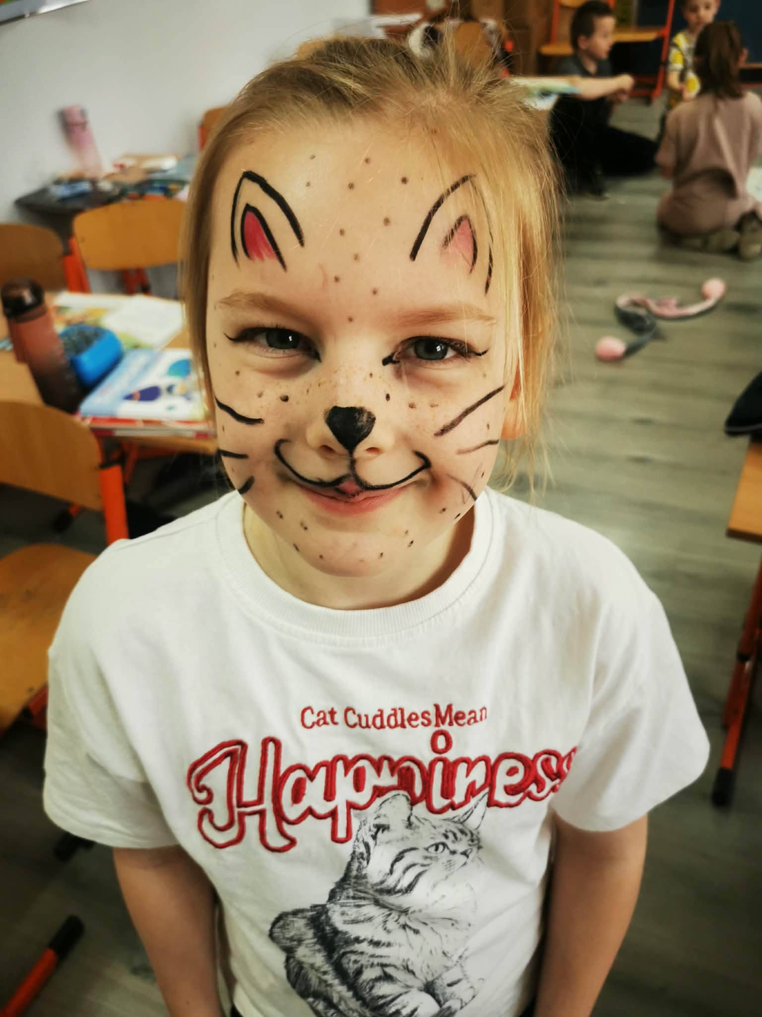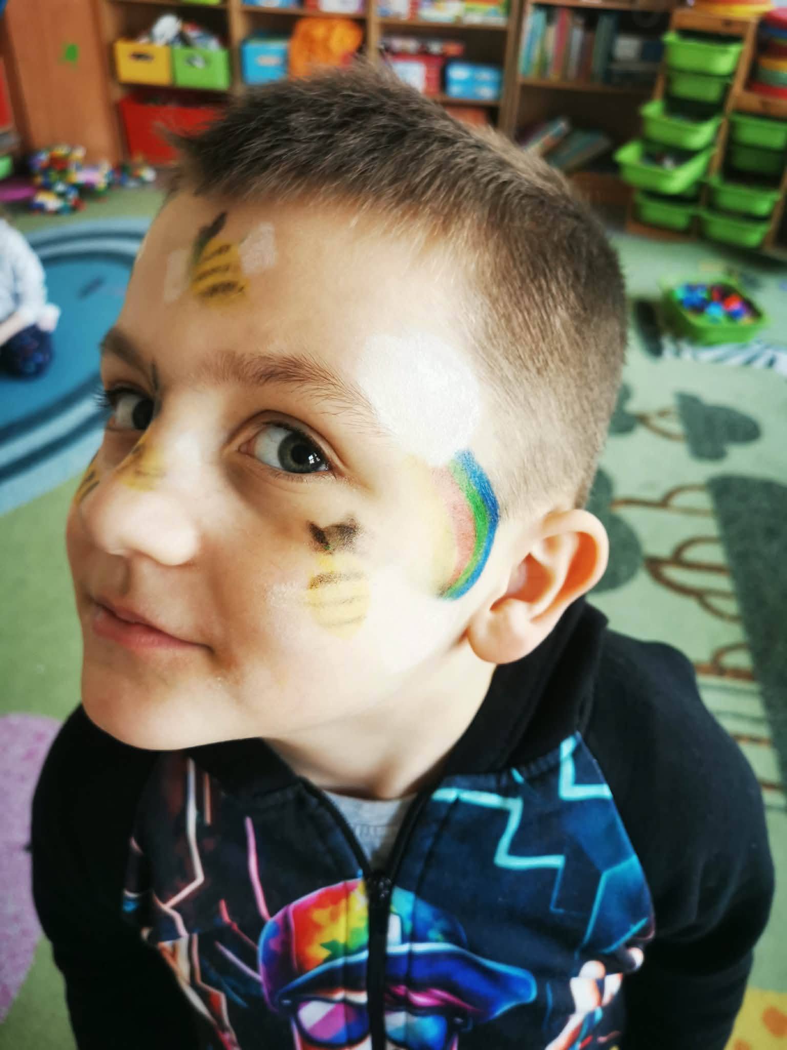 Dziś w naszej szkole powitaliśmy wiosnę uśmiechem i kolorową buźką. Uczniowie przyszli z pomalowanymi twarzami, naklejkami i wesołymi ozdobami. W korytarzach było kolorowo i bardzo wiosennie.